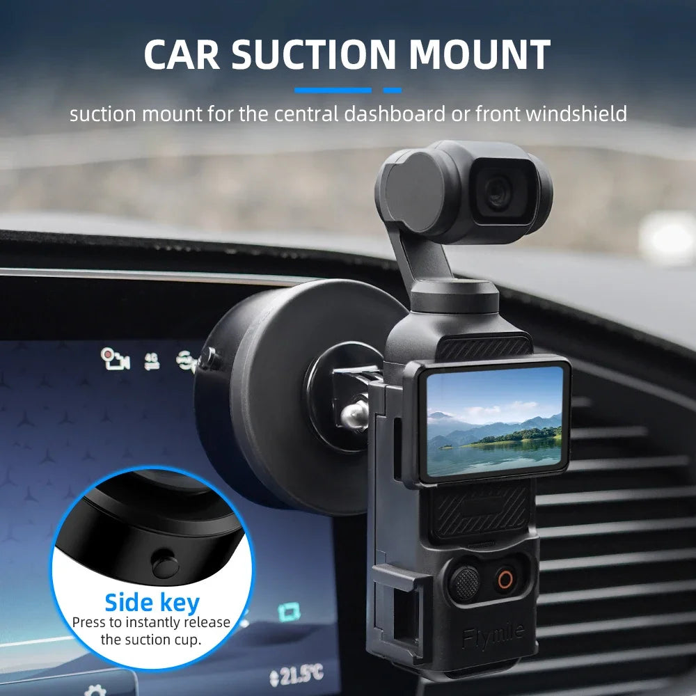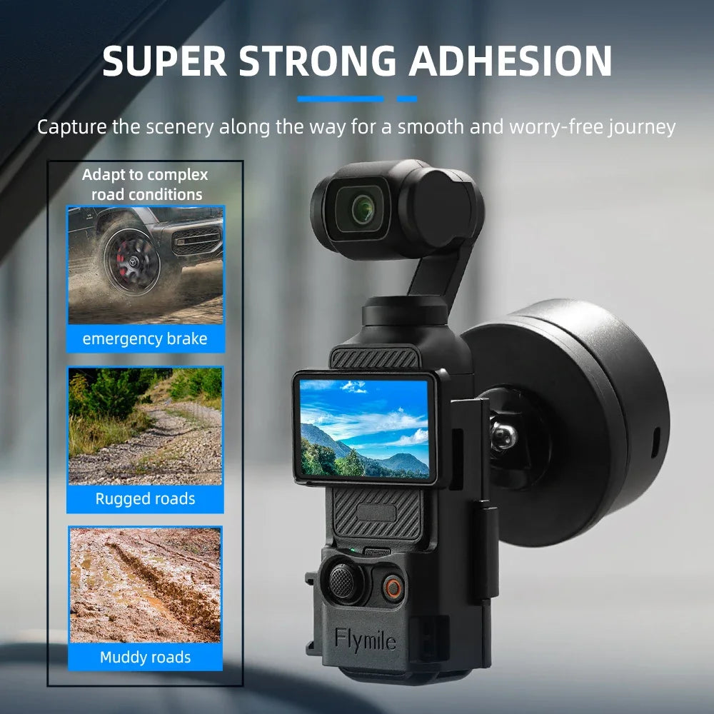 Flymile Magnetic and Powered Suction Cup Mount for DJI Pocket 3, Action Cameras, and MagSafe Devices