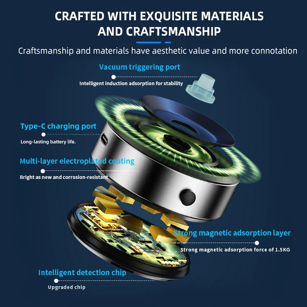- Versatile mounting with strong magnetic and vacuum cup sides